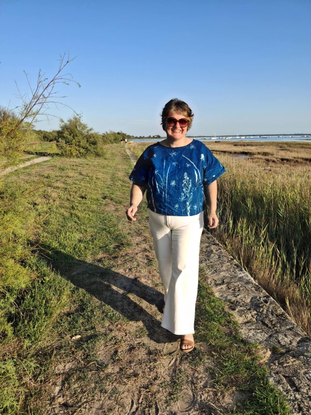 J'aurai aimé que la blouse soit un peu plus longue mais cela ne va pas m'empêcher de la porter. J'ai utilisé un vieux draps en coton blanc du stock de ma grand-mère, le tissu est épais, il tombe bien.