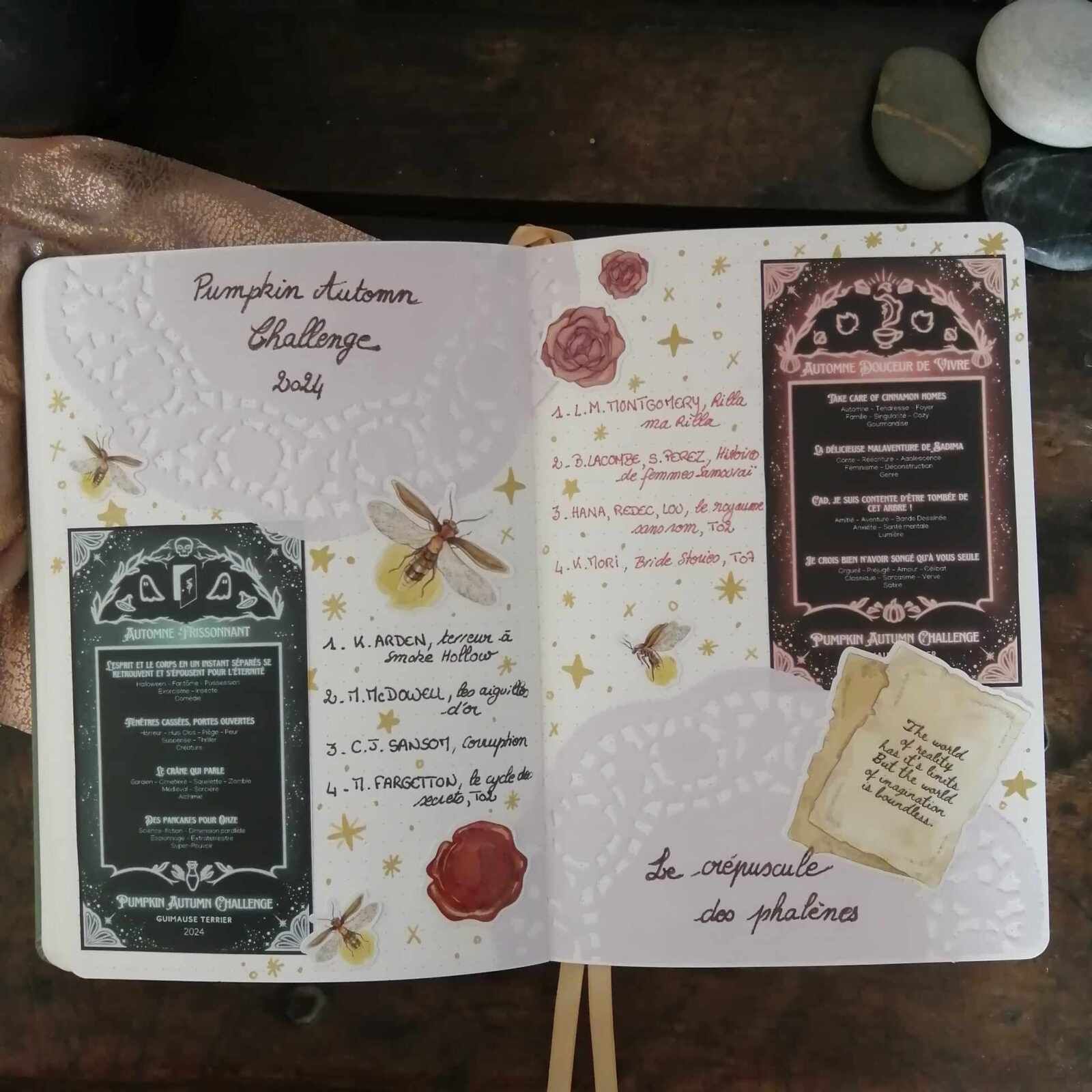 Comme toujours si vous voulez en savoir plus, je vous invite à vous rendre sur le blog de Guimause Terrier, elle décrit en détail cette édition " Le crépuscule des phalènes ". Les tableaux proposés sont créés par Guimause Terrier.